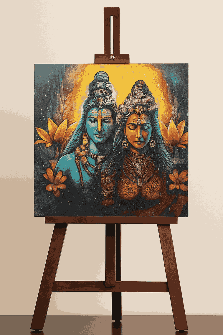 Buy wall online painting . A Painting that shows the eternal bond, cosmic love and divine balance of Shiv and Shakti.